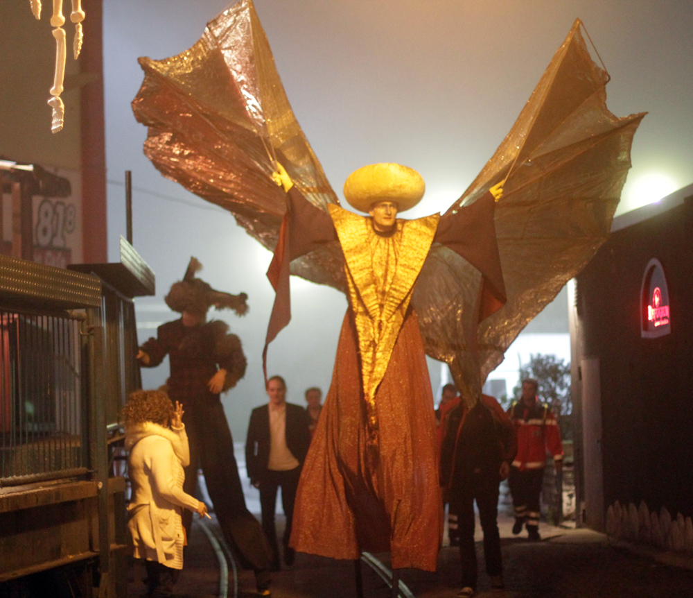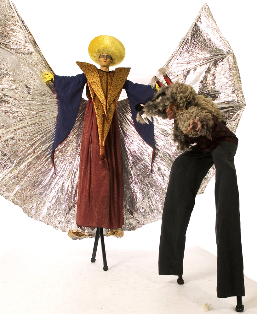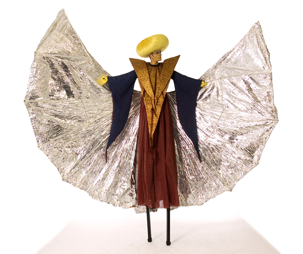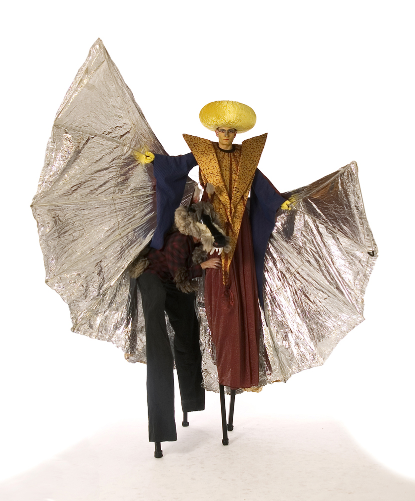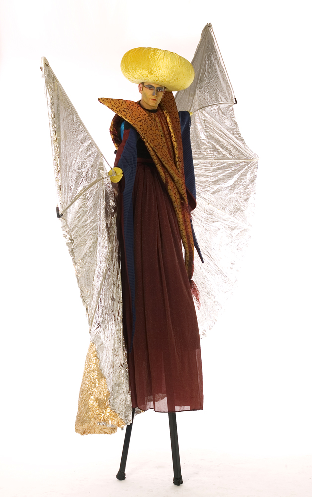 Ein unübersehbarer und verspielter Walkact auf Stelzen.