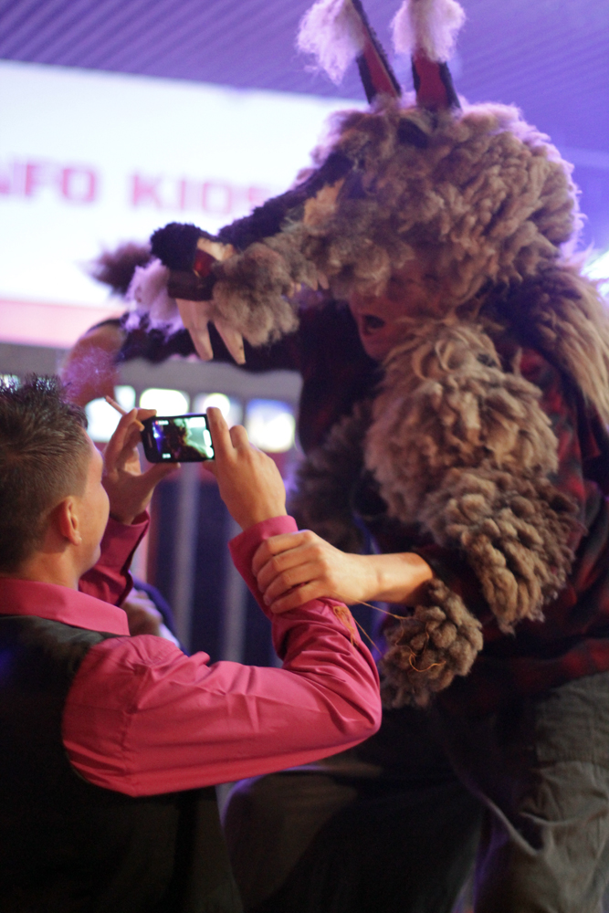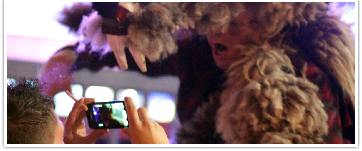 Manchmal der Realität enthoben, aber stets präsent. Während der Werwolf mit dem Publikum unbekümmert und liebevoll seine Scherze treibt, ist sich der Mond seiner selbst als schönes Phantasiewesen voll bewusst und verzaubert sein Publikum mit schönen Formen und Bewegungen. Zurück in der Realität beschützt und behütet er den Werwolf, wenn dieser mit seinem Schabernack wieder etwas zu weit gegangen ist. Während der Mond mit kraftvollen Bewegungen glänzt, der Werwolf verspielt umhertollt, geht der Vampir eigene Wege. In sich gekehrt, würdevoll und stolz überblickt er die Szene mit altem Blick.